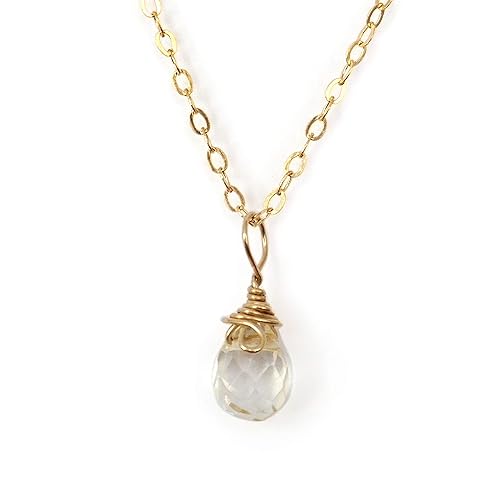 Amazon Com Small Crystal Citrine Charm Necklace Small 14k Gold Charm Pendant 18 Inch 14k Gold Filled Chain Light Yellow Translucent Quartz Handmade