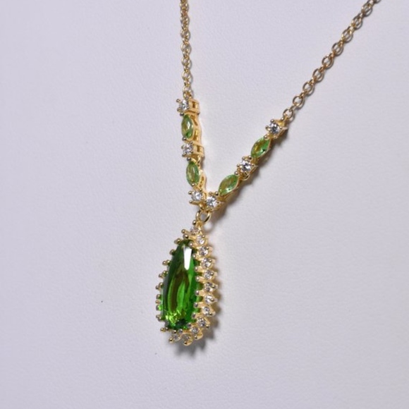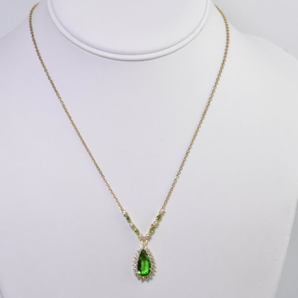 Named helenite after the mountain from which it was born its vivid colors and amazing story captured the attention of jewelry designers worldwide. To enhance the beauty of this stunning miracle of nature even more each teardrop stone is framed in the Ultimate Diamond Alternative Diamond Aura and set in gold-finished925 sterling silver. Details about Stauer Stunning Vintage Helenite Teardrop Necklace Pendant 925 Sterling See original listing.