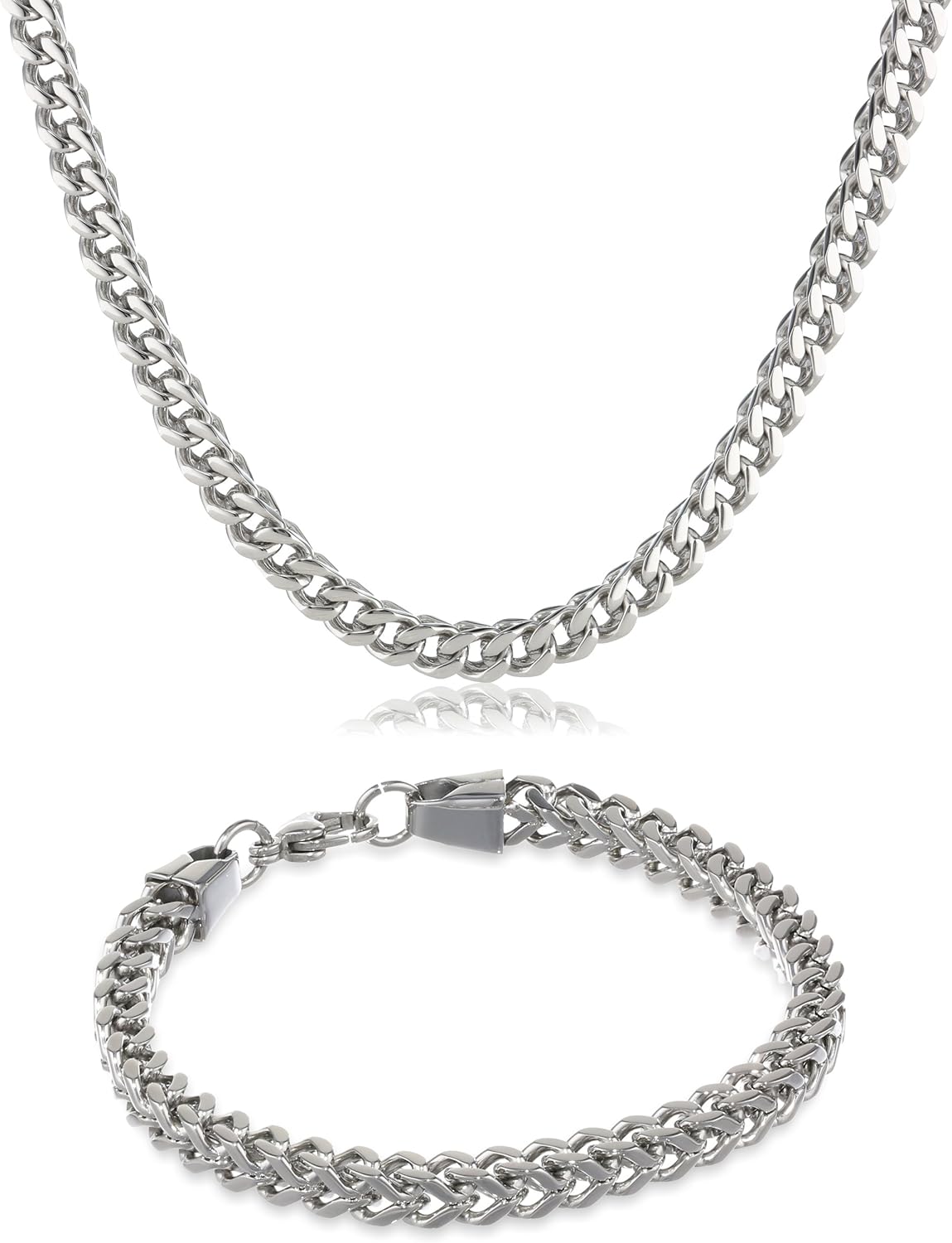 The Fox Gift Set Thick Stainless Steel 6mm Bracelet And Necklace 22 9 Amazon Com
