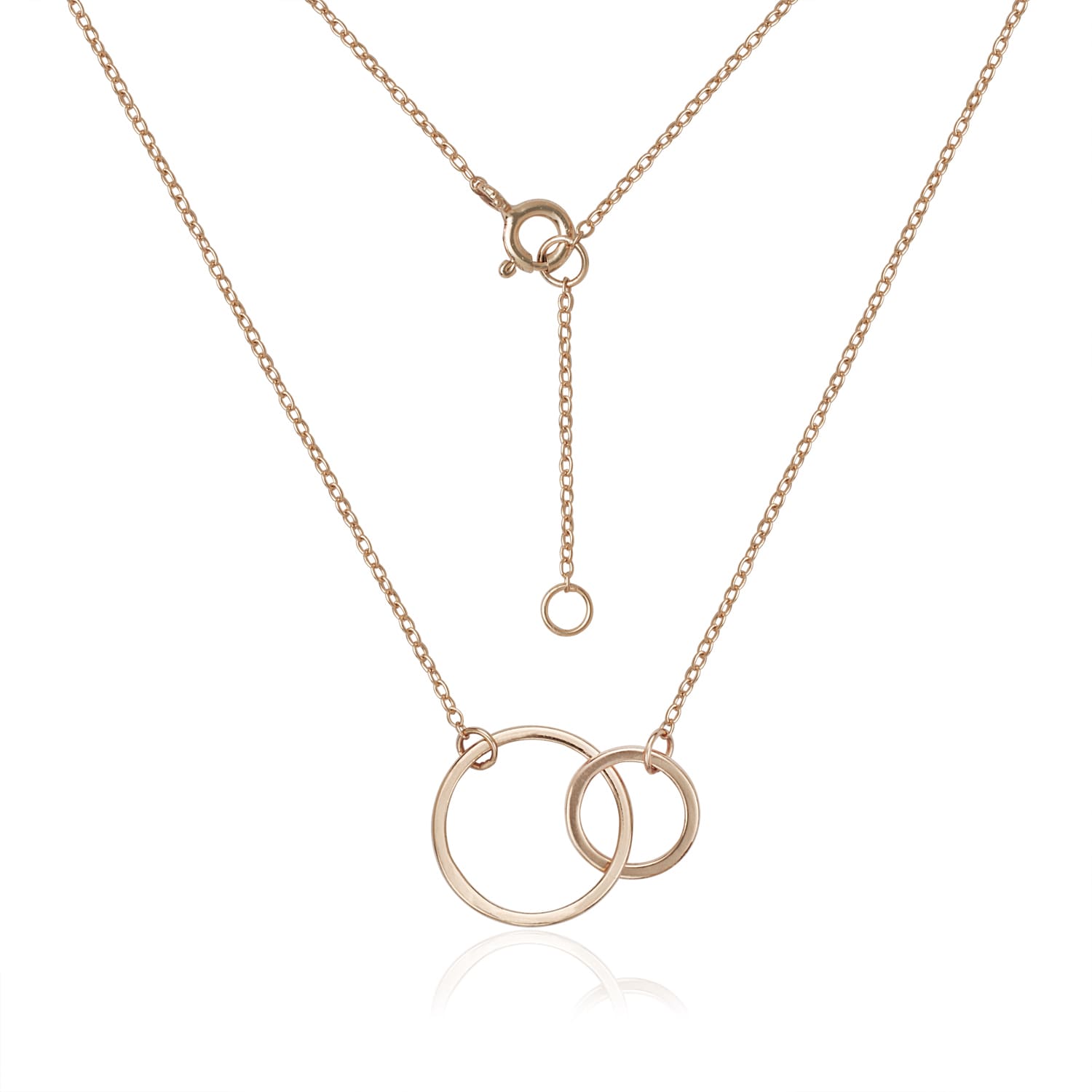 Sterling Silver Interlocking Eternity Double Circle Pendant 16 Inch 1 Inch Extender Necklace