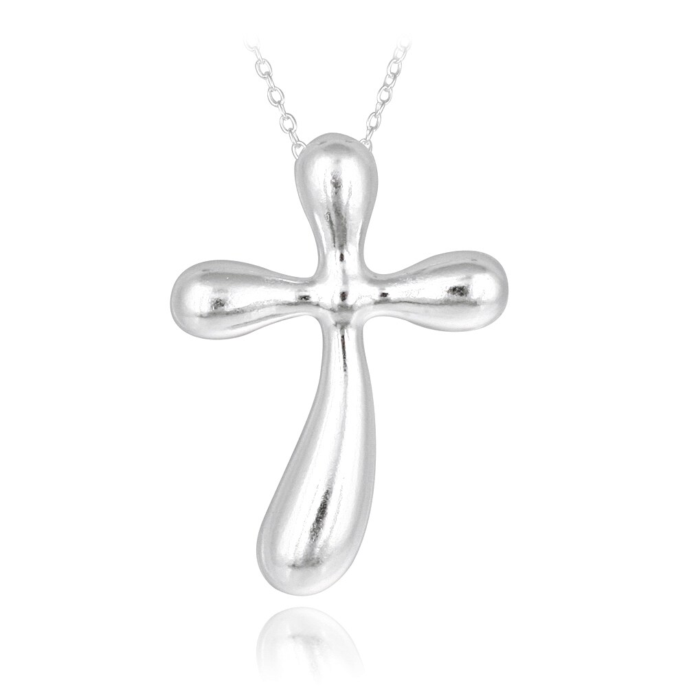 Mondevio Sterling Silver Puffed Cross Necklace On Sale Overstock 9034926