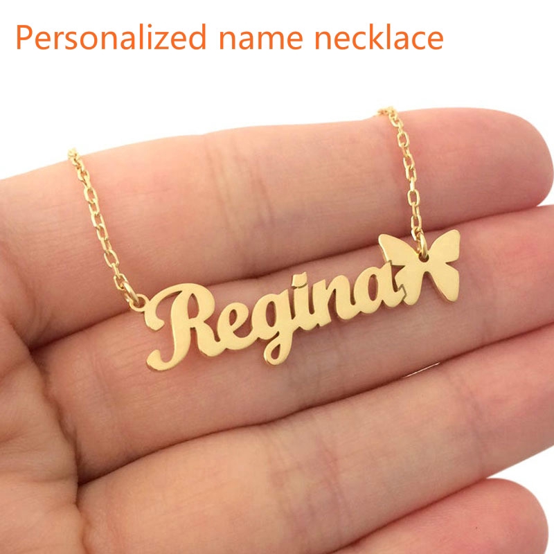 Personalized Name Necklace Cute Butterfly Pendant Gold Stainless Steel Name Customized Necklace Shopee Singapore