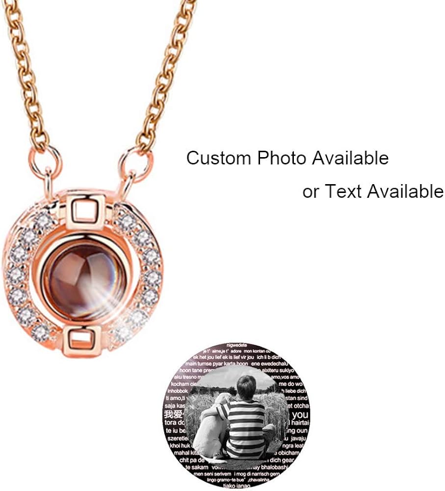 Amazon Com Customized Photo Projection Necklace Present With 100 Languages Confession Of Love Stone 925 Sterling Silver Pendant Necklace Clothing